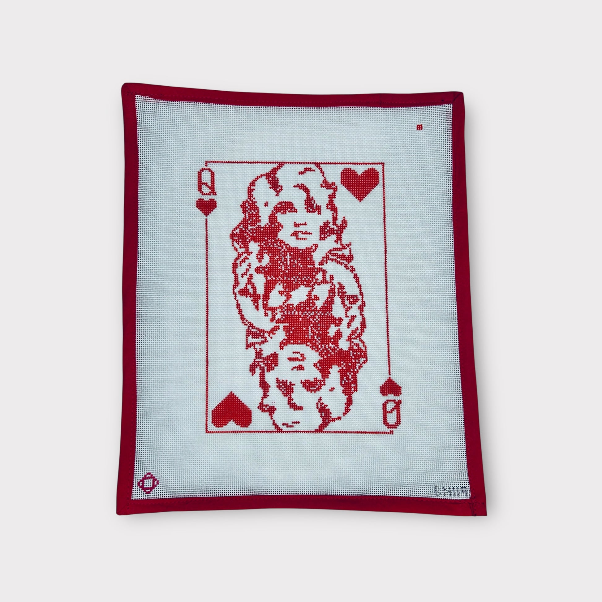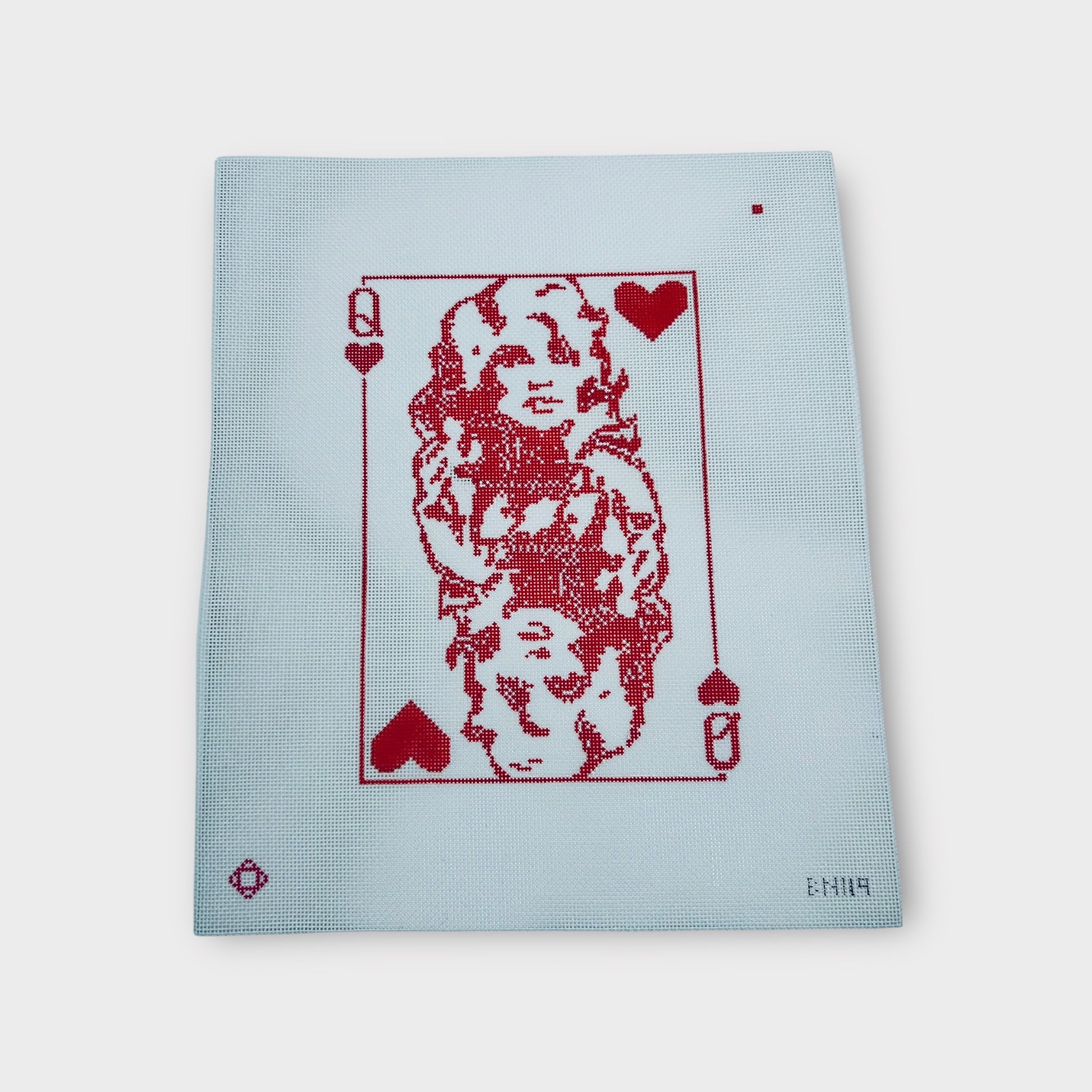 Pay tribute to the one and only Dolly Parton with this show-stopping needlepoint canvas featuring Dolly as a fabulous playing card queen. Equal parts kitsch and country glam, this design brings sparkle, sass, and Southern charm to your stitching lineup.