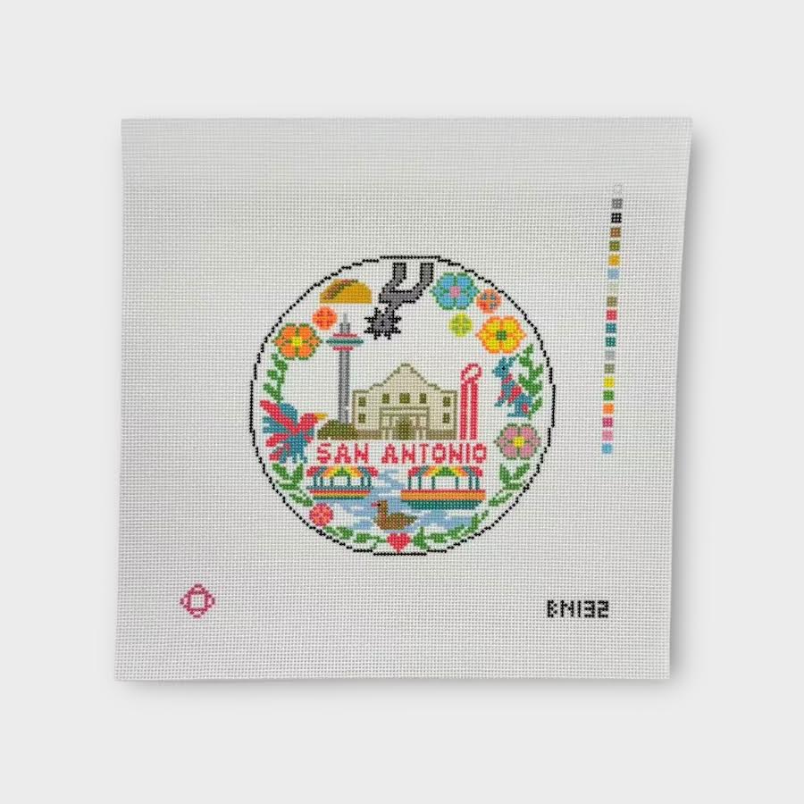 Stitch your way around San Antonio with this charming round needlepoint ornament canvas! Perfect for travelers and Texas enthusiasts, this design captures the spirit of the Alamo City in every thread. Whether you're commemorating a visit, gifting a fellow San Antonio lover, or adding to your collection of travel memories, this canvas invites you to create a one-of-a-kind keepsake. Ideal for needlepoint beginners and seasoned stitchers alike, it's a fun way to turn your wanderlust into wearable art. Hang it proudly and let your needle do the talking!