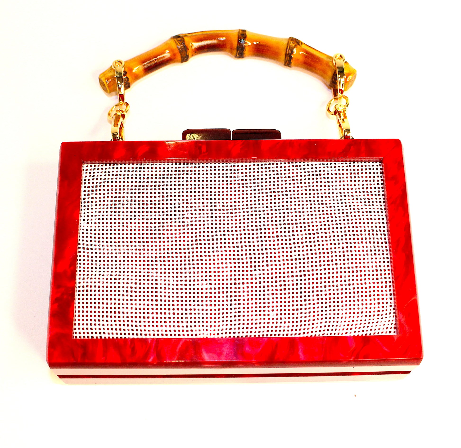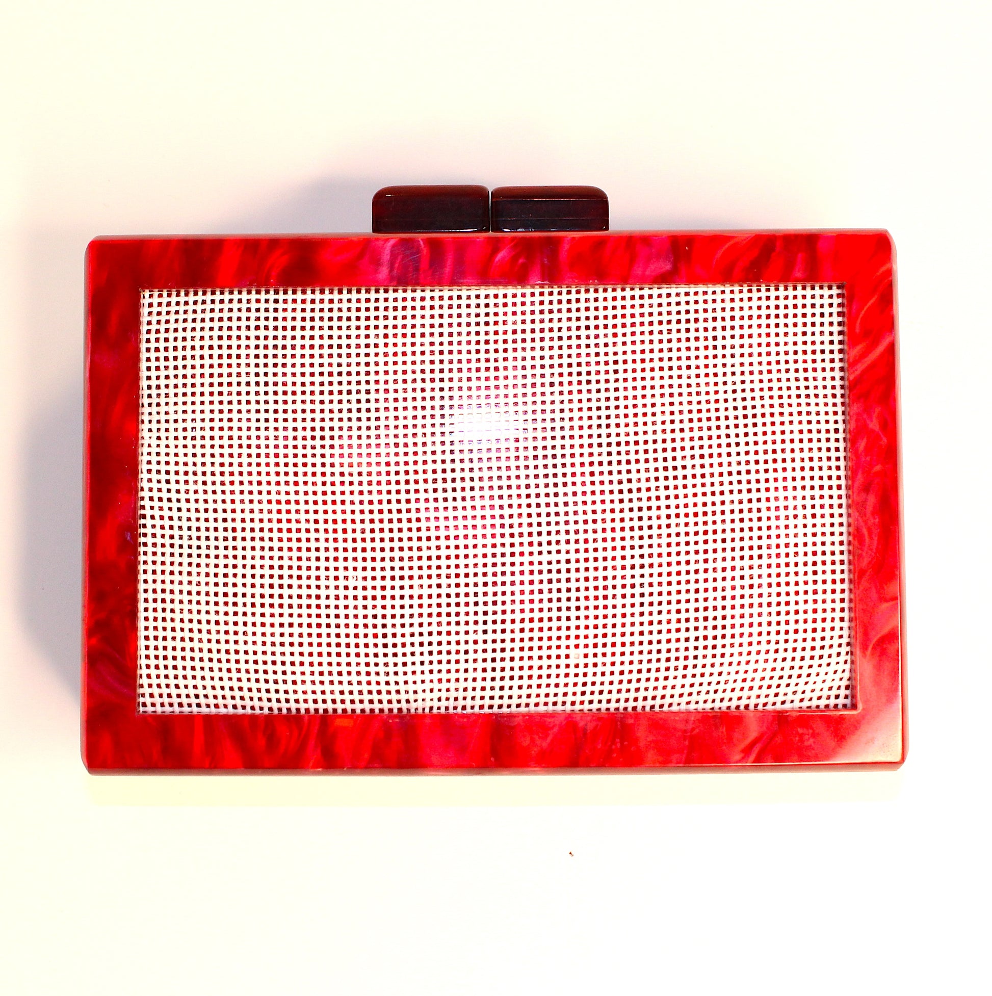 Slide in your canvas like a pro (because you are one), snap it shut, and voilà – you've turned thread and patience into a statement piece. With a crystal-clear acrylic body and magnetic closure, this clutch lets your creativity take center stage. Whether you’re hitting brunch or the craft store, you’ll be carrying couture that you made.